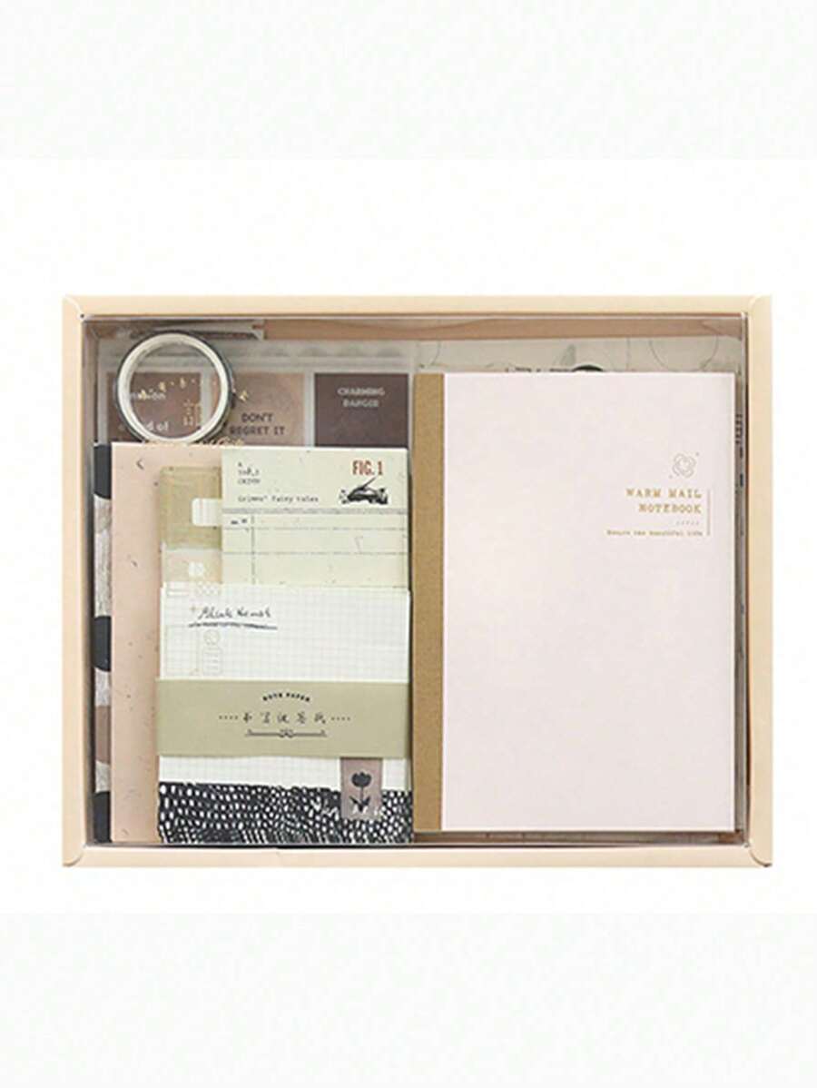 122pcs Material Set For Journaling In A Gift Box, Includes A6 Journal Book, Paper, Stickers, Tape, Cute & Minimalist Ins Style, Great Gift Idea