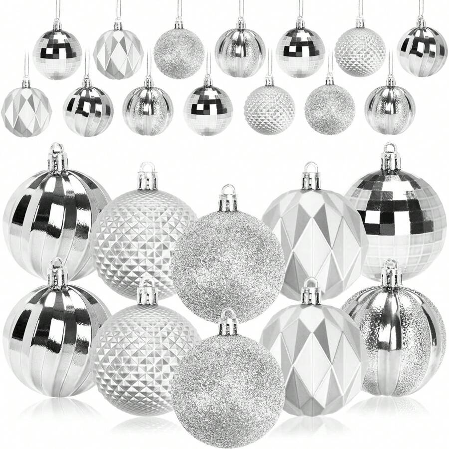 12PCS Christmas Tree Balls Christmas Balls Ornaments Hanging Christmas Balls Shatterproof Decorations for Xmas Tree Holiday Wedding Anniversary Ornament (Silver 2.36 Inch/60mm)