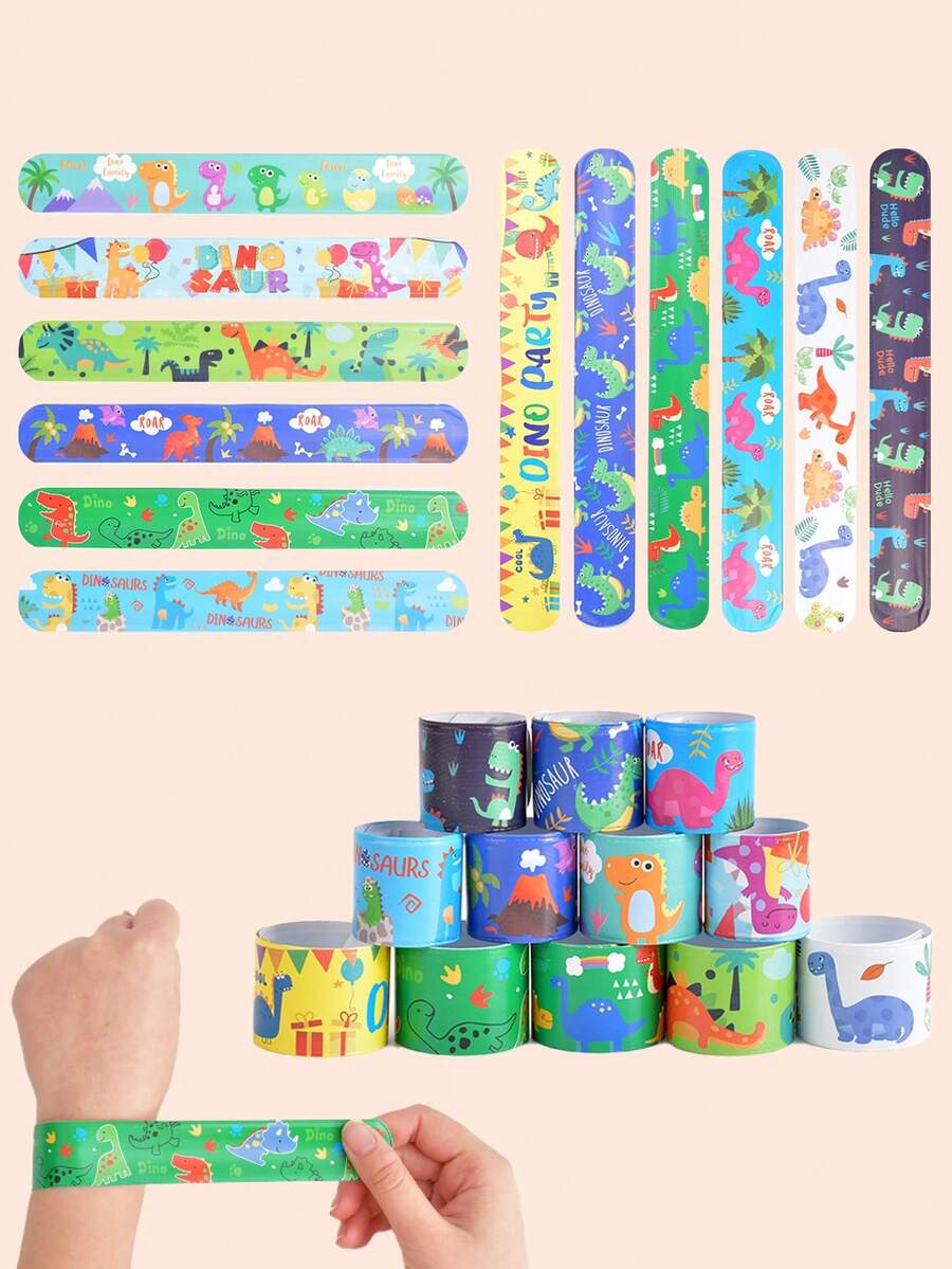 12Pcs Slap Bracelets, Dinosaur Snap Bracelets Bulk Bracelet For Party Supplies Favors Exchanging Gifts Easter Holiday Gifts