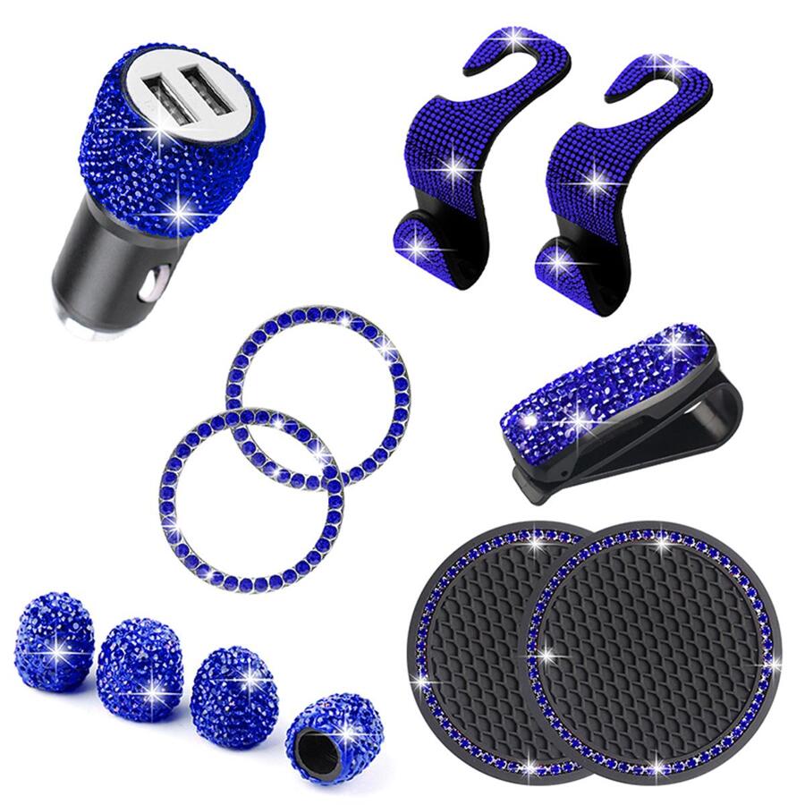 12Pcs/set Car rhinestone Set, Seat Hooks, start ring, Cup mat, car charger, valves