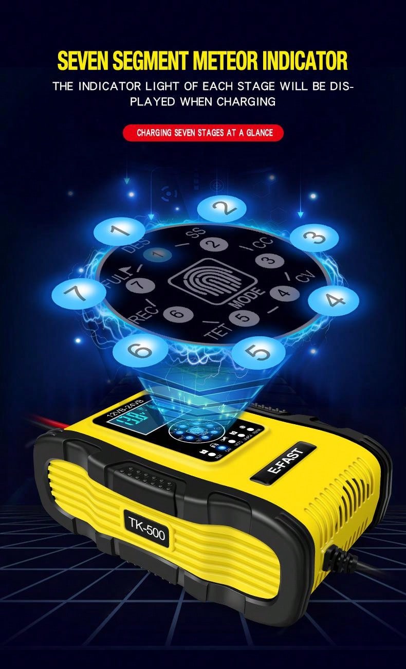 12V/24V 12A Universal Car Battery Starter Automotive Battery Charger Maintainer For Truck Car AGM Deep Cycle VRLA Pulse Repair EU Plug