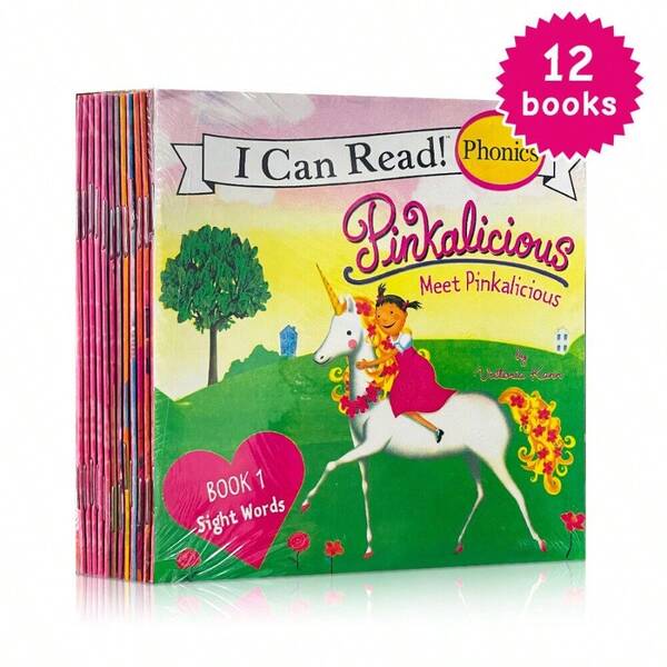 12books/set I Can Read Phonics pink alicious My Very First picture books English Book For Children kids baby pocket story book