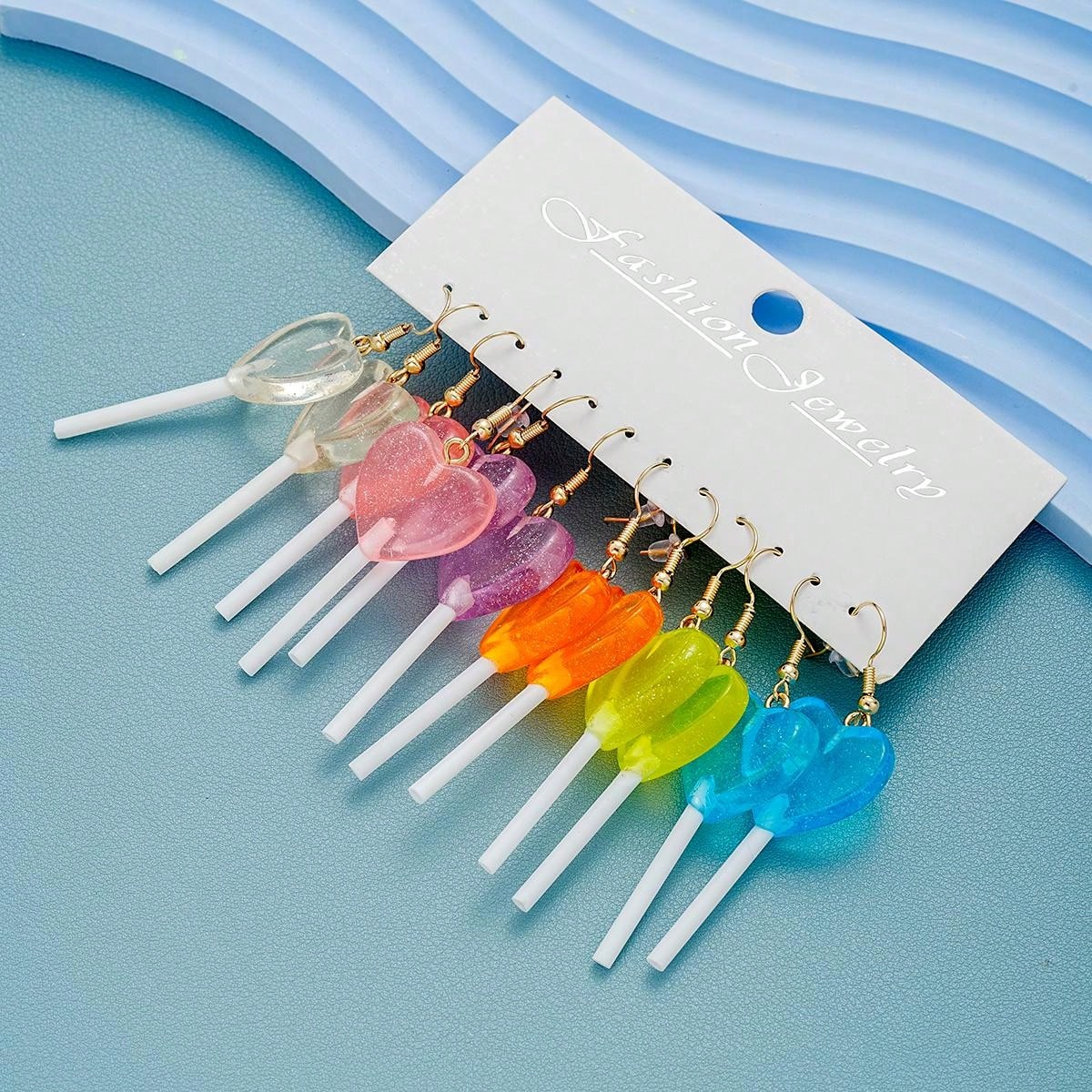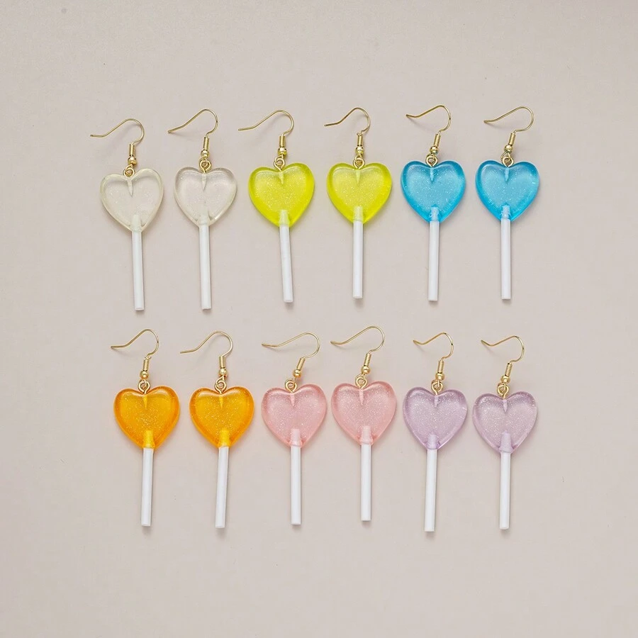12pairs/Set Simple Colorful Lollipop Shaped Heart Earrings For Women, Lover, Dating And Valentine's Day Gift