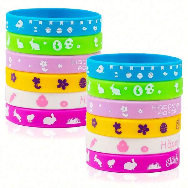 12pcs, Easter Rubber Bracelets Silicone Wristbands For Easter Party Favors Supplies Rubber Bracelets For Gifts Easter Egg Fillers Gifts For Basket Stuffers Accessories