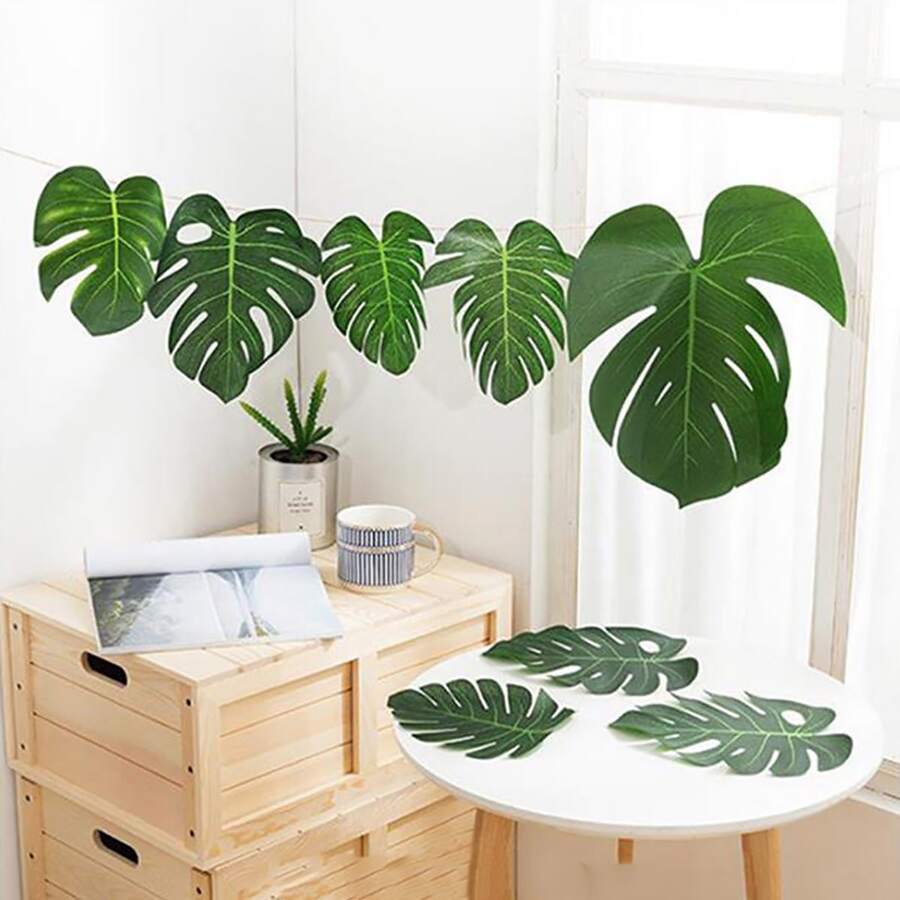 12pcs 8-Inch Turtle Back Leaf Artificial Leaves Set For Hawaiian Beach Wedding Party Decoration & Home Decor & Photo Props, 17cm*20cm