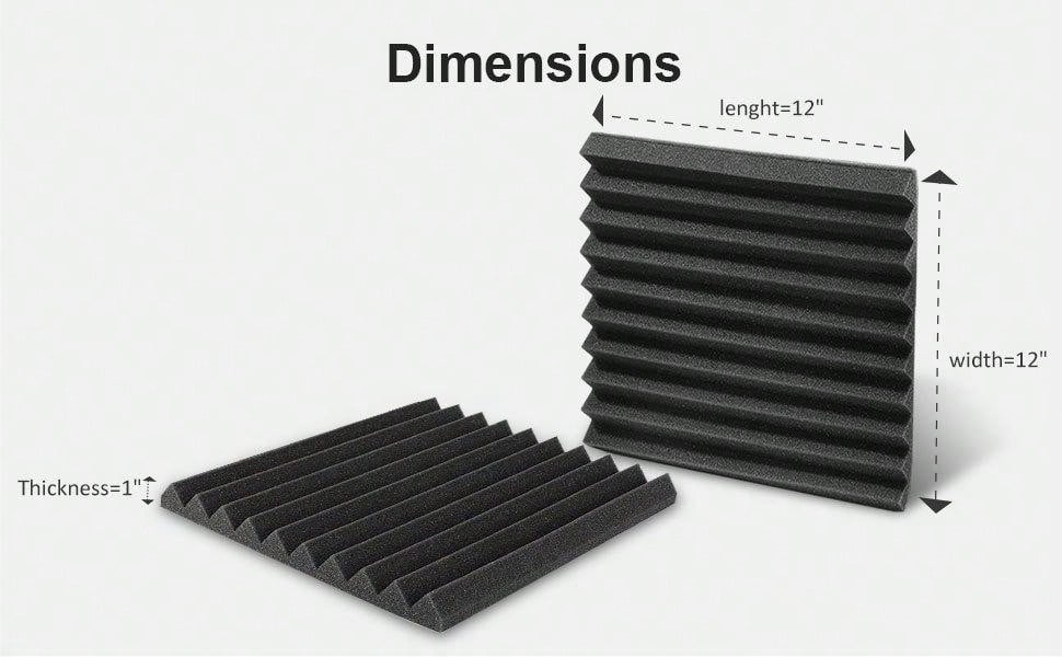 12pcs Acoustic Foam Panels, 1" X 12" X 12" Studio Soundproofing Wedges Fire Resistant Sound Proof Padding Acoustic Treatment Foam
