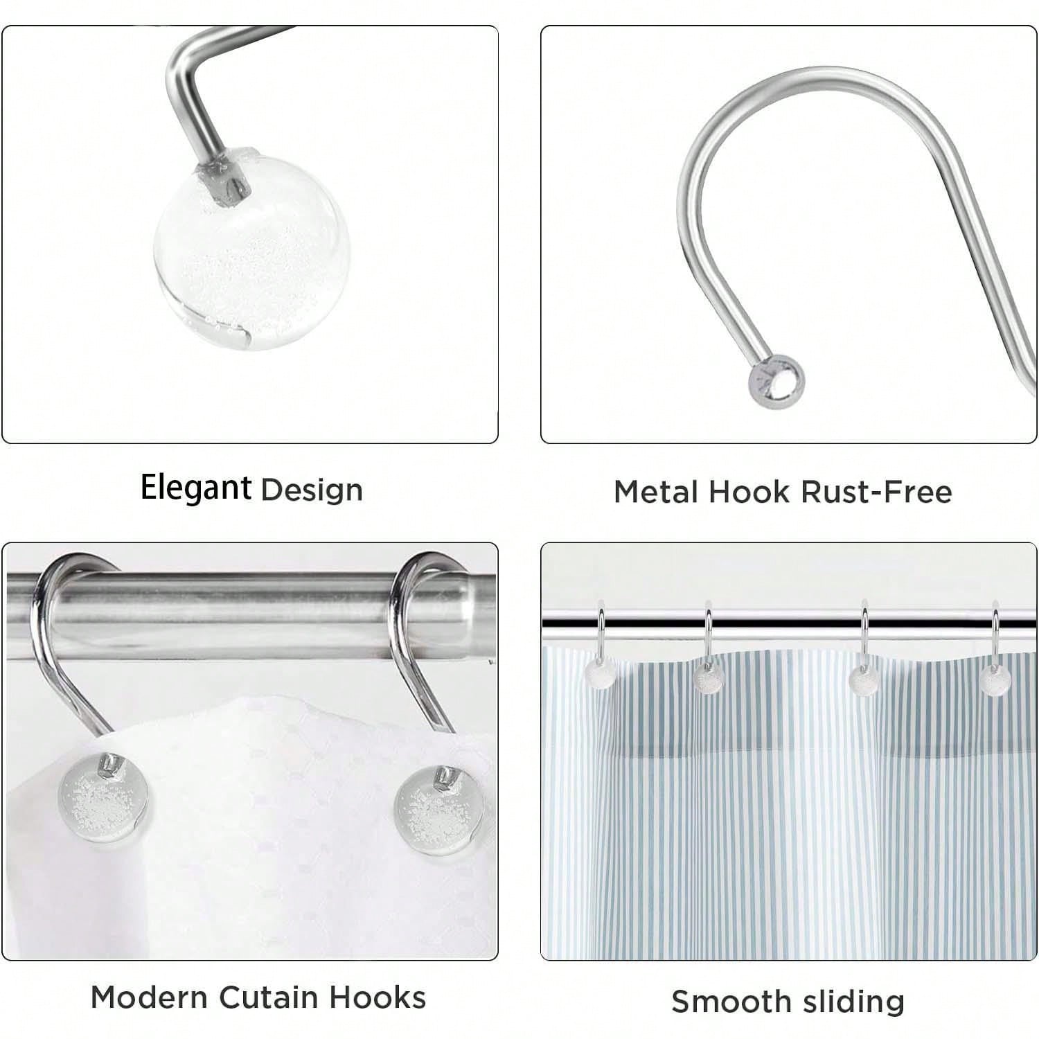 12pcs Black Acrylic Bubble Design Shower Curtain Hooks, Waterproof, Rustproof, Strong Load-Bearing, Decorative Metal Shower Curtain Rings