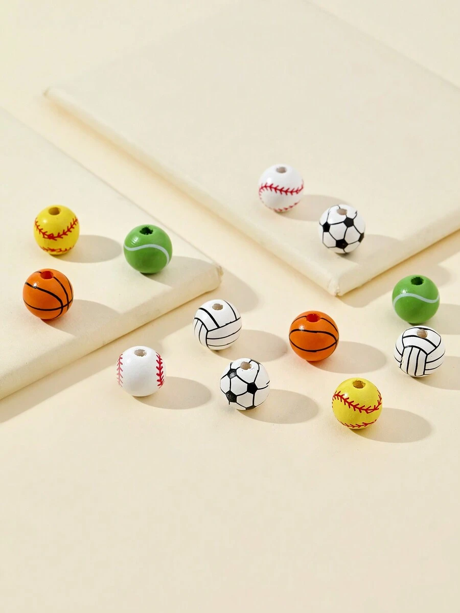12pcs Mixed Sport Theme Printed Wooden Beads, Can Be Used For Earrings, Bracelets, Necklaces Etc. Random Colors & Styles