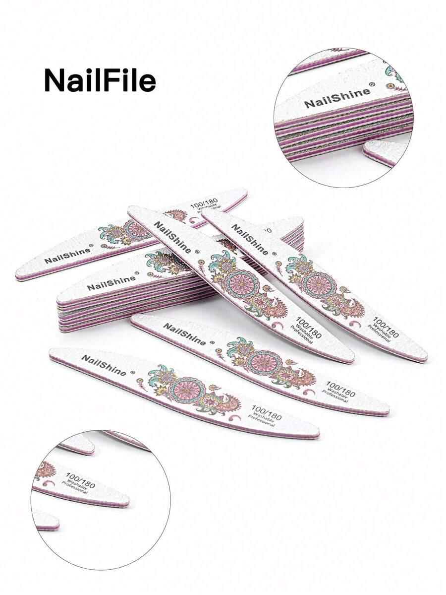 12pcs Pink Flower Printed Thickened Hand & Foot Nail File, Double-Sided & Reusable, Portable Manicure Tool For Daily Home Use