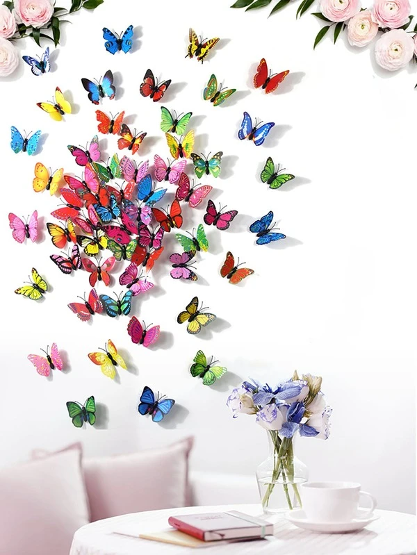12pcs Random Color 3d Creative Simulated Butterfly Wall/lamp/home Decorative Crafts/birthday Or Festival Party Supplies
