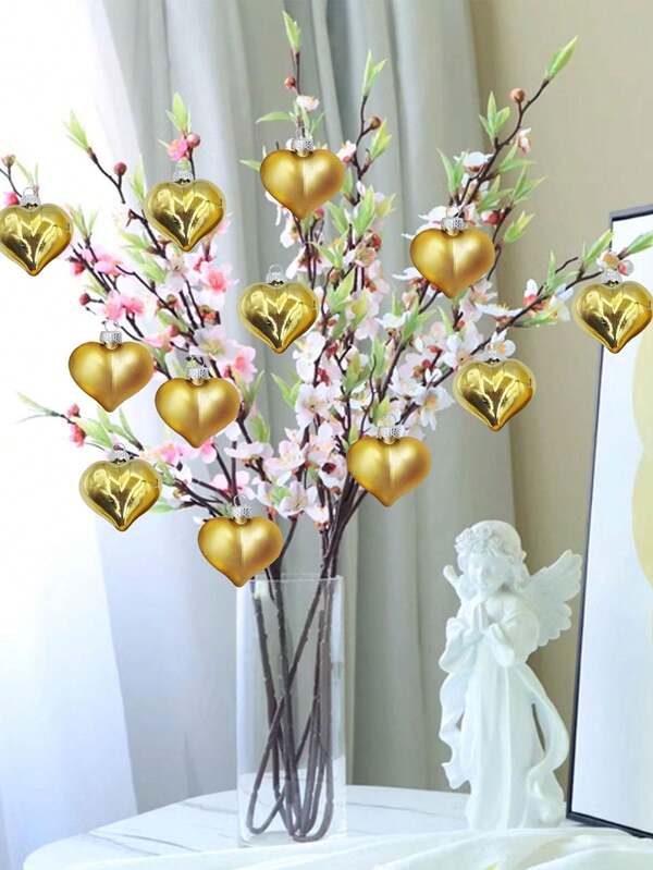 12pcs Valentine'S Day Heart-Shaped Pendant Shiny Ceramic Heart Combination Set Wedding Decor Diy Pendant Decoration