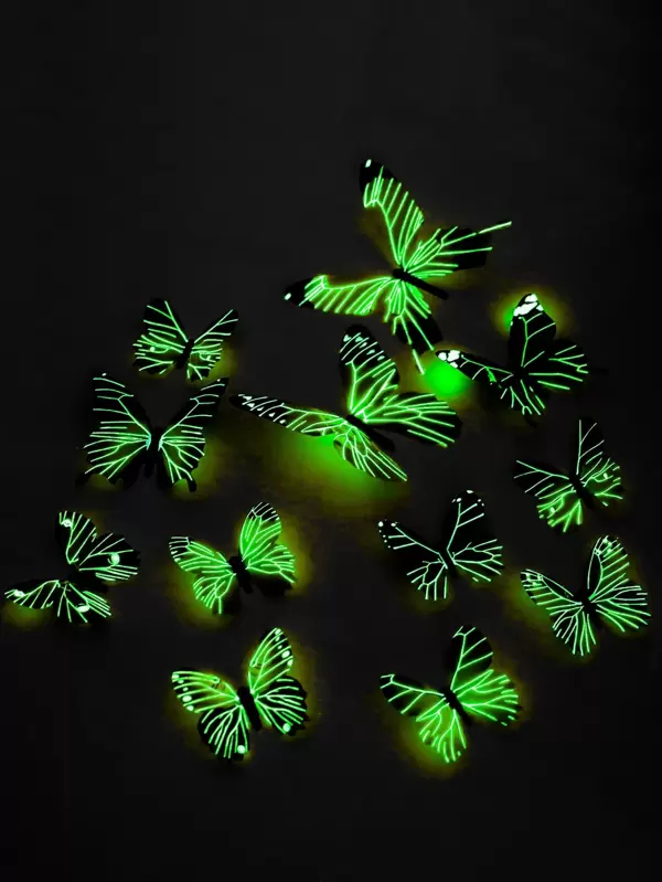 12pcs/set PVC Butterfly Sticker, 3D Glow In The Dark Room Decorating Creative Butterfly Sticker For Home