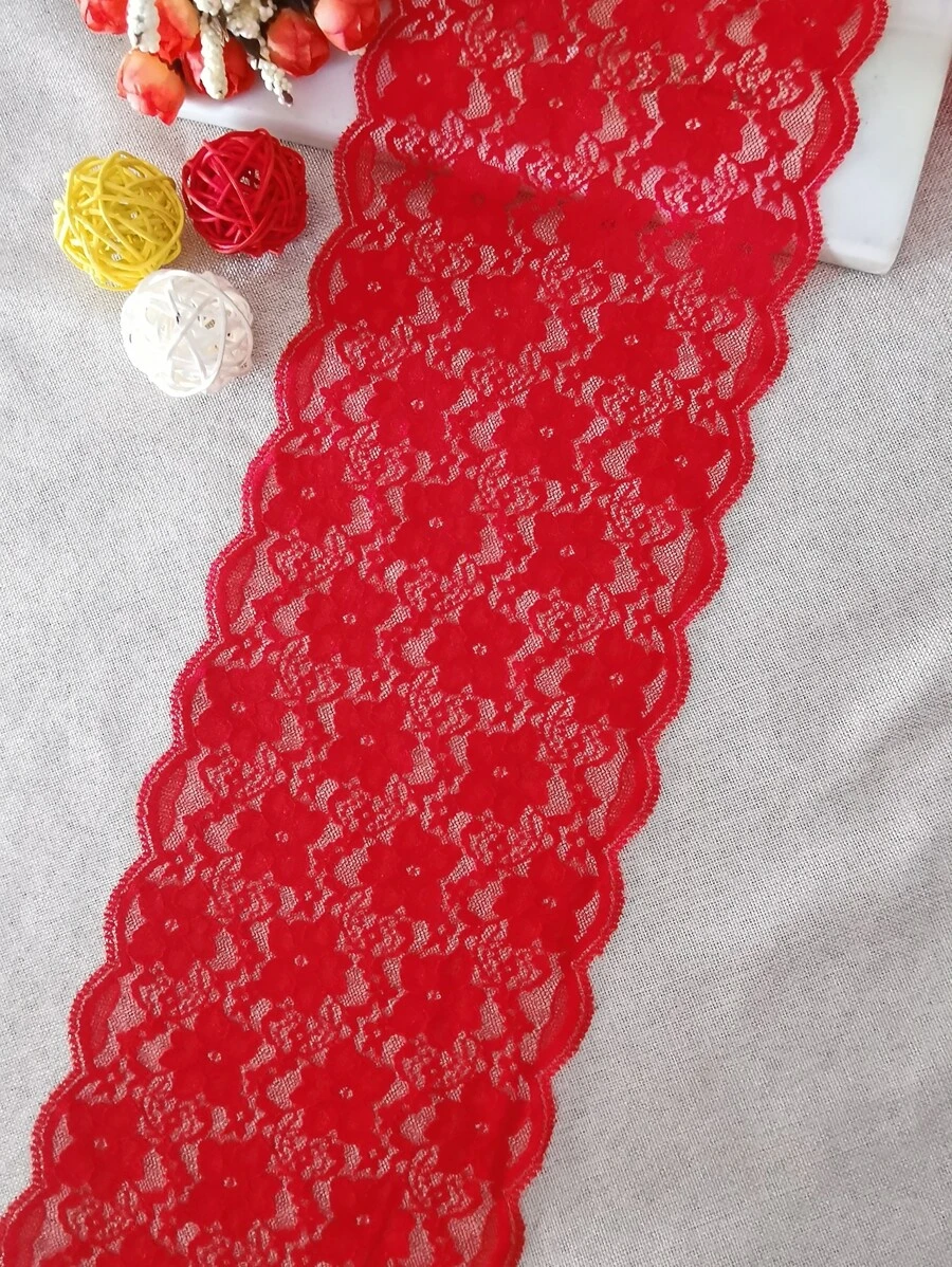 130cm/Piece Soft And Elastic Lace Trim, 15cm Width, Suitable For Clothes, Hat, And Dress Decorations, Red