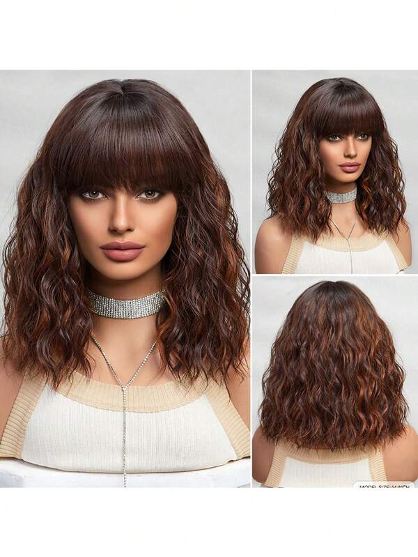 14-Inch Short Bob Wave Curly Wig Synthetic Fringe Wig Synthetic Weave Women'S Wig Girl Holiday Party Wig Everyday Wear Wig