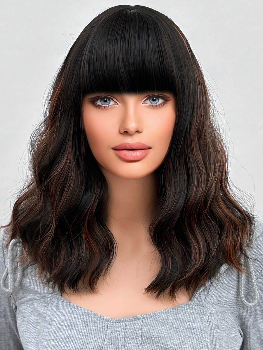 14-Inch Short Curly Synthetic Wig With Bangs, Female Wig, Suitable For Everyday Use