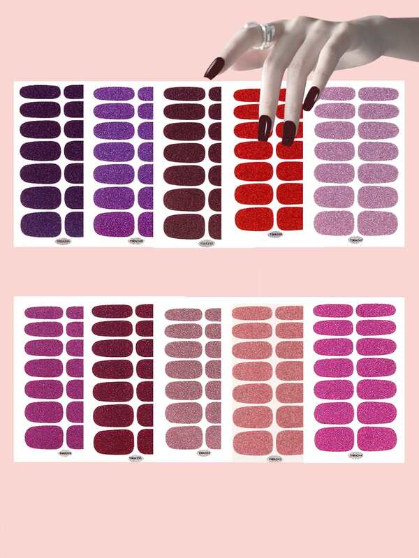 140 Pieces Nail Stickers Self-Adhesive Fashion Simple Glitter Lake Blue Semi-Cured Gel Nail Stickers Diy Nail Decoration For Women Girls & 2 Files