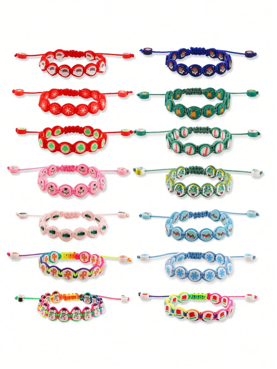 14pcs/package Christmas Themed Handmade Braided Bracelets, Suitable For Women's Daily Wear