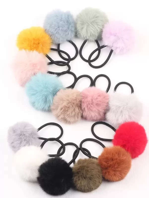 15pcs Pom Pom Decor Hair Tie