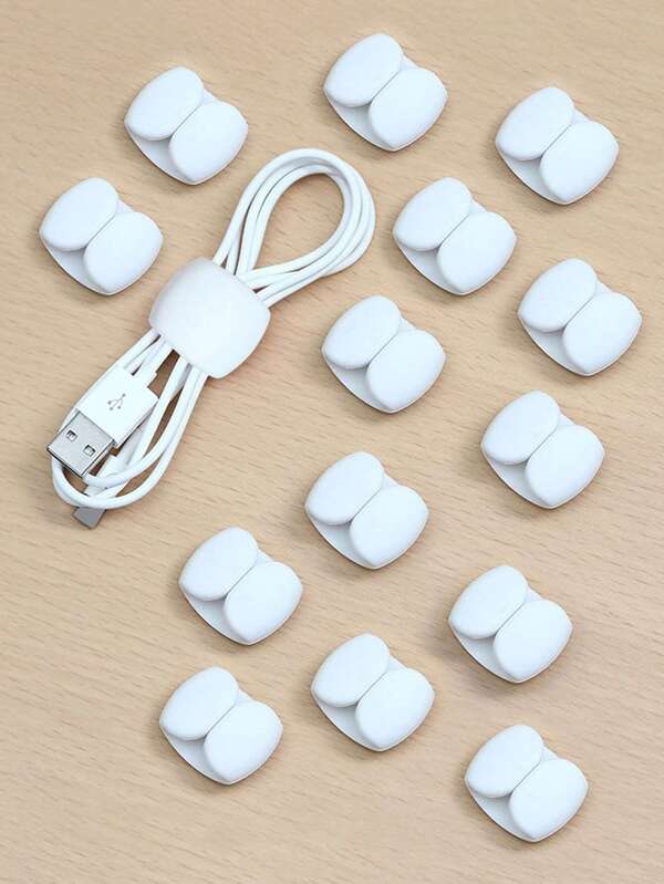 15pcs White Cable Management Clips, Earphone Cord Organizers, Multi-Functional Wire Winding Buckle