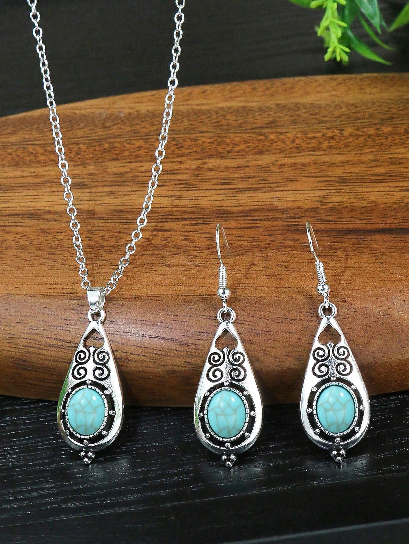 15pcs/Set Vintage Style Antiqued Silver Jewelry Set With Turquoise Inlay, Irregular Geometric Design, Simple & Fashionable, Suitable For Women'S Daily Wear, Work, Travel And Photography