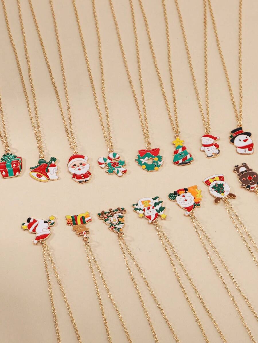 15pcs/set Christmas Theme Necklaces With Santa Claus, Snowflake, Christmas Tree Pendants As Gift For Friends