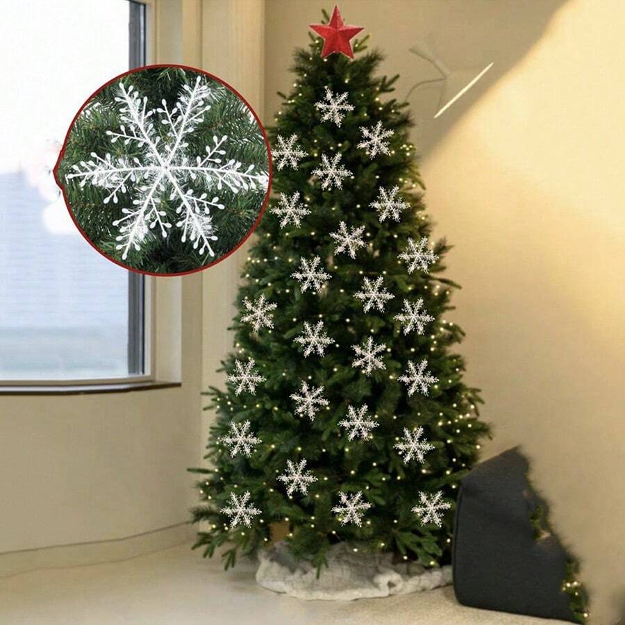 15pcs/set Christmas Tree Decoration Small Snowflake Ornaments, 11cm/15cm/18cm/21cm