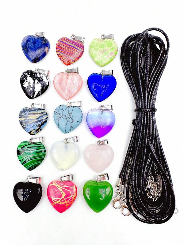 15pcs/set Natural Crystal Geometric DIY Pendant & 15pcs/set DIY Jewelry Base For DIY Jewelry Making