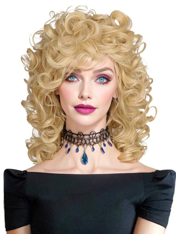 16 Inch Long Blond Curly Women's Heat Resistant Synthetic Hair Wig for Daily Party Use or Disco Hippie Rocking 70s 80s Theme Party and Halloween Rocker Heavy Metal 70's 1980s Costume Wigs