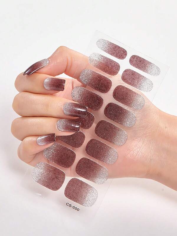 16 Pieces 1 Sheets Full Wrap Nail Polish Stickers Nail Strips Self-Adhesive Gel Nail Strips Art Decals with Nail File for Women Girls DIY Nail Decorations (Gradient Color)