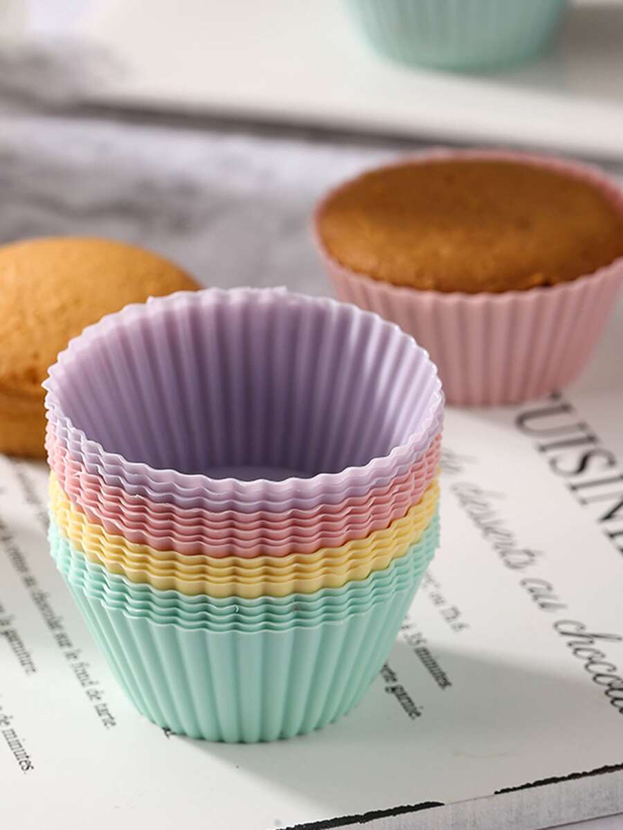 16pcs Random Color Silicone Cake Mold Round Muffin Cupcake Baking Mold, Reusable DIY Cake Decorating Tools Wedding Birthday Party Decorations