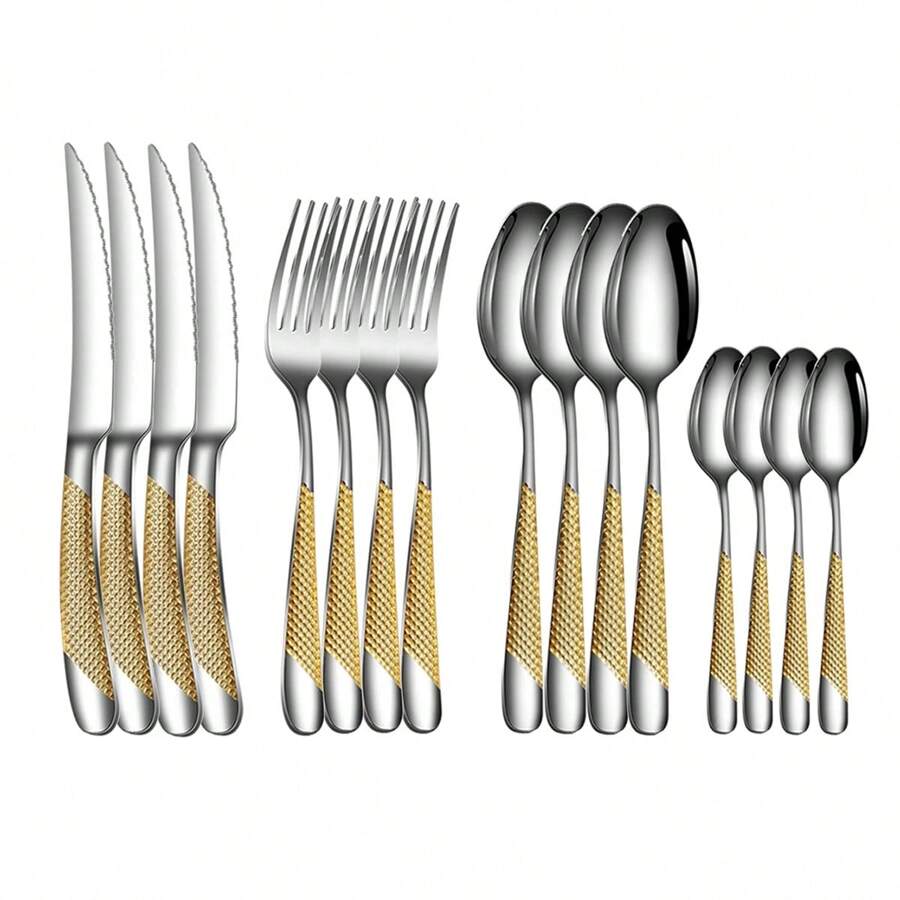 16pcs Western Tableware Stainless Steel Black Dinnerware Cutlery Set Kitchen Dinner Cake Fork Spoon Knife Flatware Set