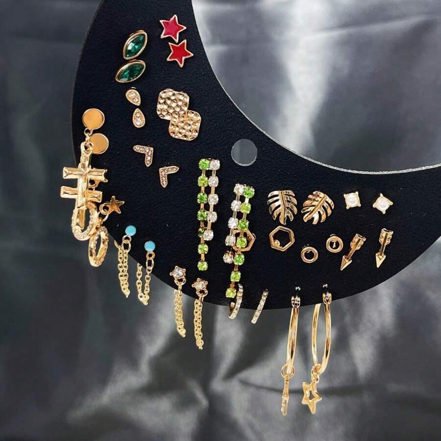 17pairs/Set European And American Simple Multi-Diamond Vintage Style Small Earring Set, Original Design, Unique Style