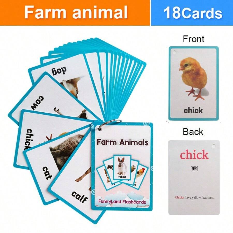18 Cards Of Farm Animals Words Flash Cards For Toddler Learning & Education Toys Gifts For Kindergarten Preschool