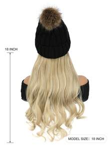 18 Inch Women'S Synthetic Fiber Hat Wig, Removable Black Knit Hat With Big Wavy Long Curly Hair, Matte High Temperature Silk Hood Wig, Suitable For Daily Wear, Hd Wig Cap, Wig Cap, Synthetic Wig, Kinky Curly Wig, Curly Wig