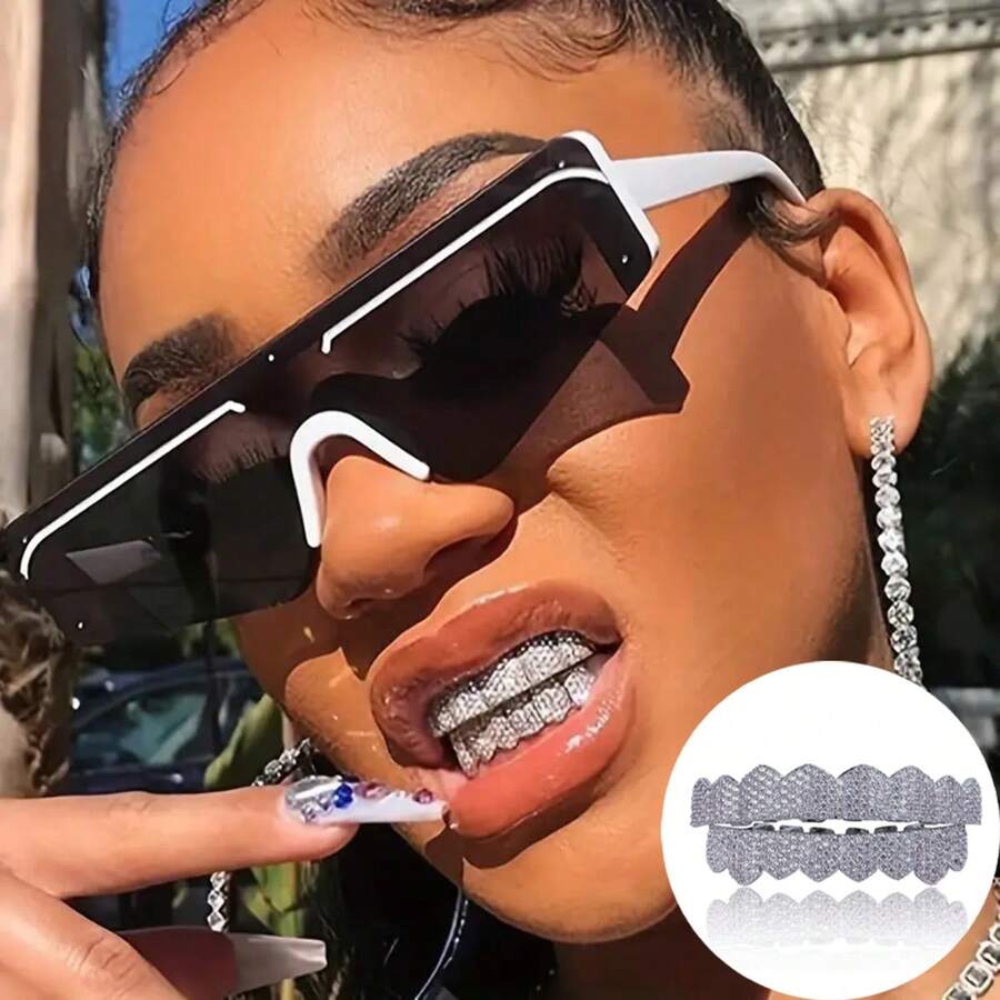 18K Golden Plated Golden Finish 8 Top Teeth 8 Bottom Tooth Hip Hop Mouth Grills for Men and Women