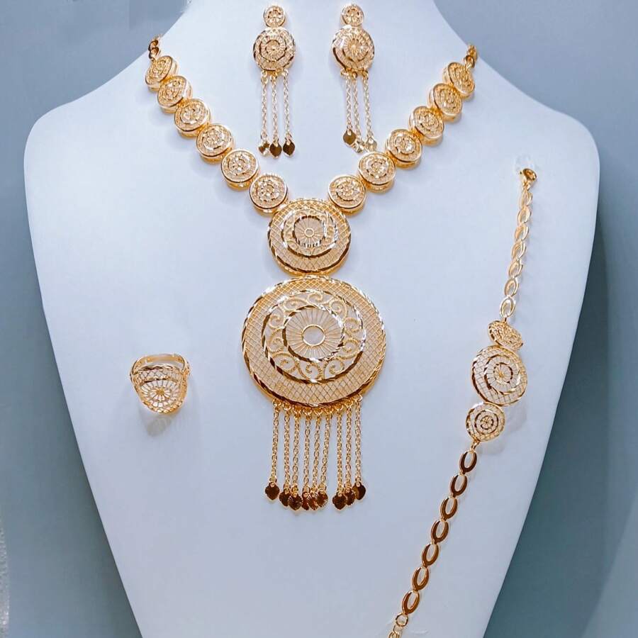 18k+Champagne Gold Plating Delicate Pattern Round 5pcs/Set Wear-Resistant & Stretchy Copper Material Fashion Bridal Wedding Festival Gift Set