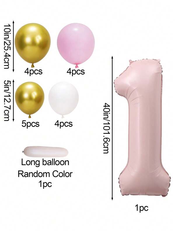 19pcs-40in/Light Pink Number Shaped Aluminum Foil Balloon Set For Children'S Birthday Party Decoration, Anniversary Celebration, Background Decoration Prop