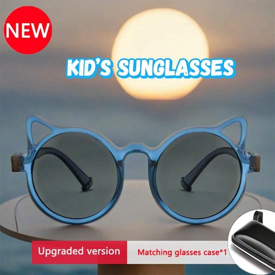 1PC 1 Piece Of Children'S Sunglasses, Cute Cat Ears, Cute Style, Cat Ear Sunglasses, Round Frame Glasses, Fashionable And Fashionable Children'S Glasses, Suitable For Outdoor Play, Parties, And Gatherings. Gifts For Children