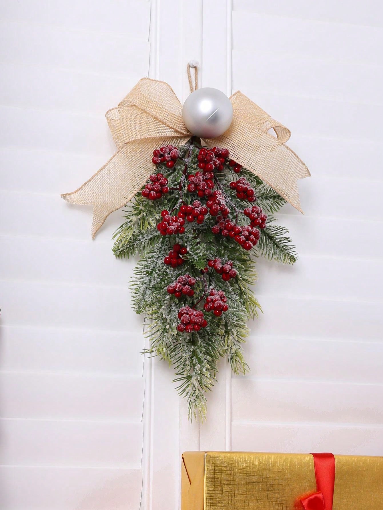1PC 45CM(H) Simulation pine needle red fruit round ball bow Teardrop hanging Home Hotel Shopping mall Christmas party decoration