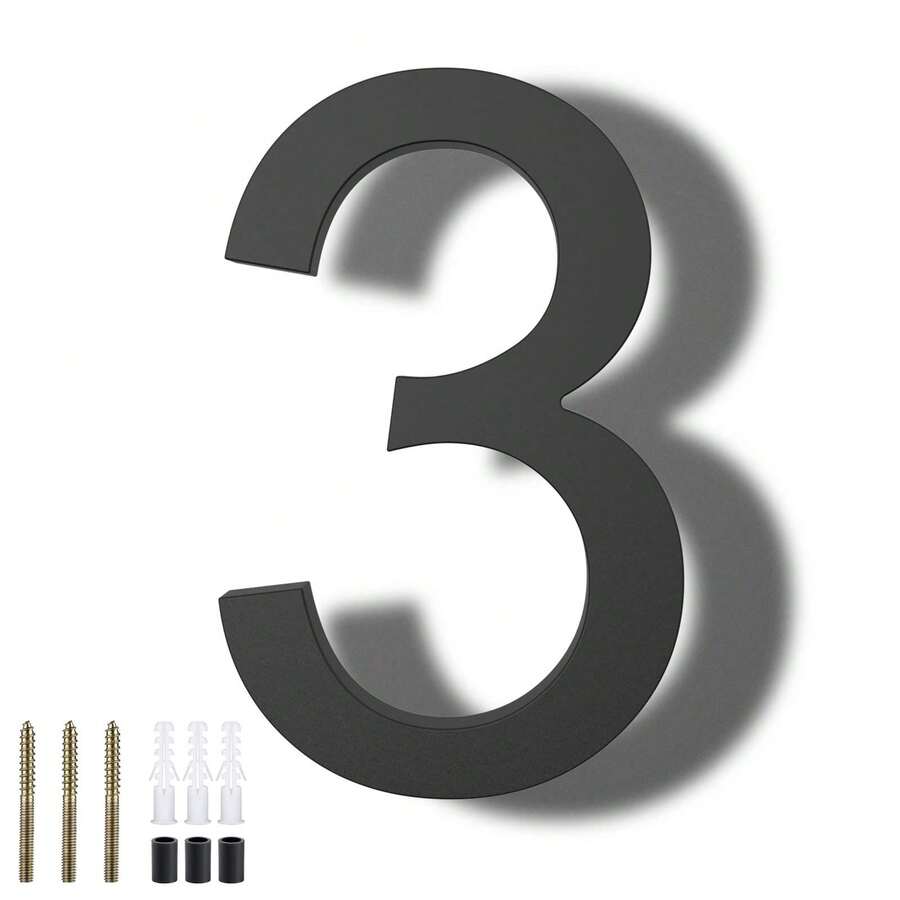 1PC 8 inch Floating Large House Numbers for Outside, Black Modern House Address Numbers Decor for Visibility Signage with Nail Kits