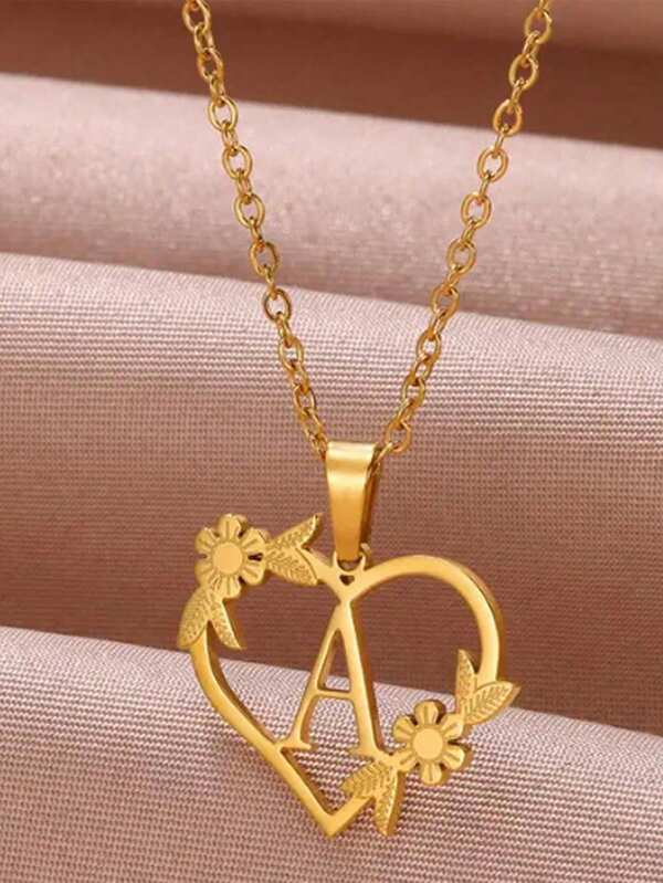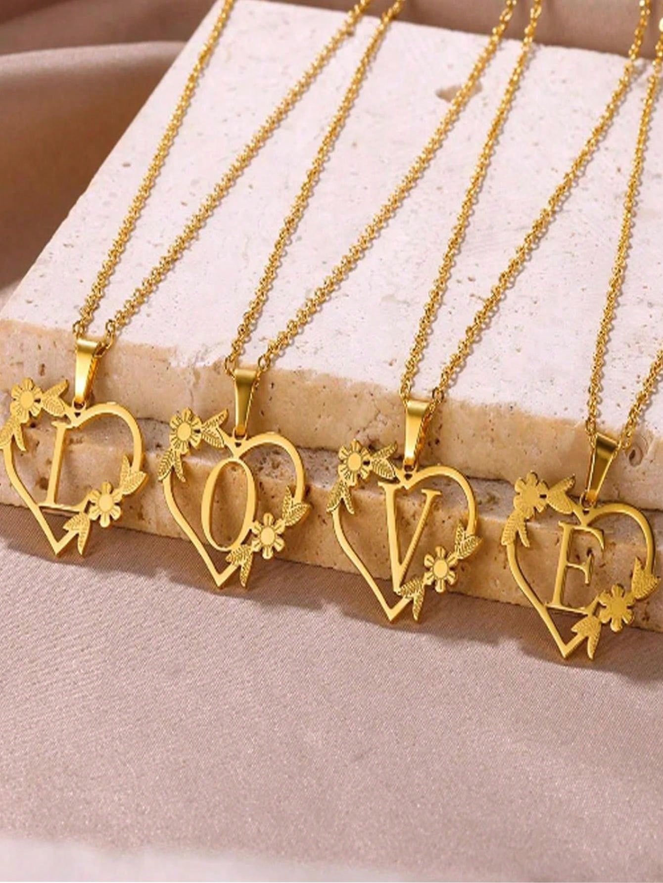 1PC Fashion Creative Ladies Stainless Steel Hollow Love Flower A-Z26 Letter Necklace Suitable For Gifts To Commemorate Valentine's Day Gifts