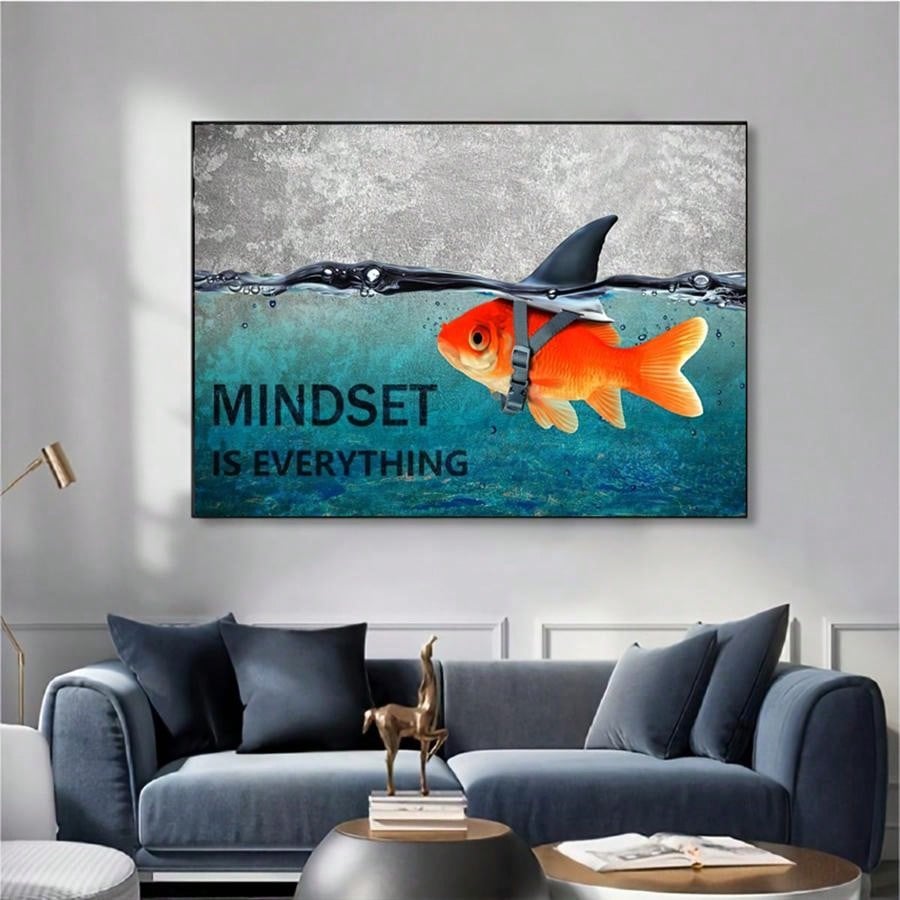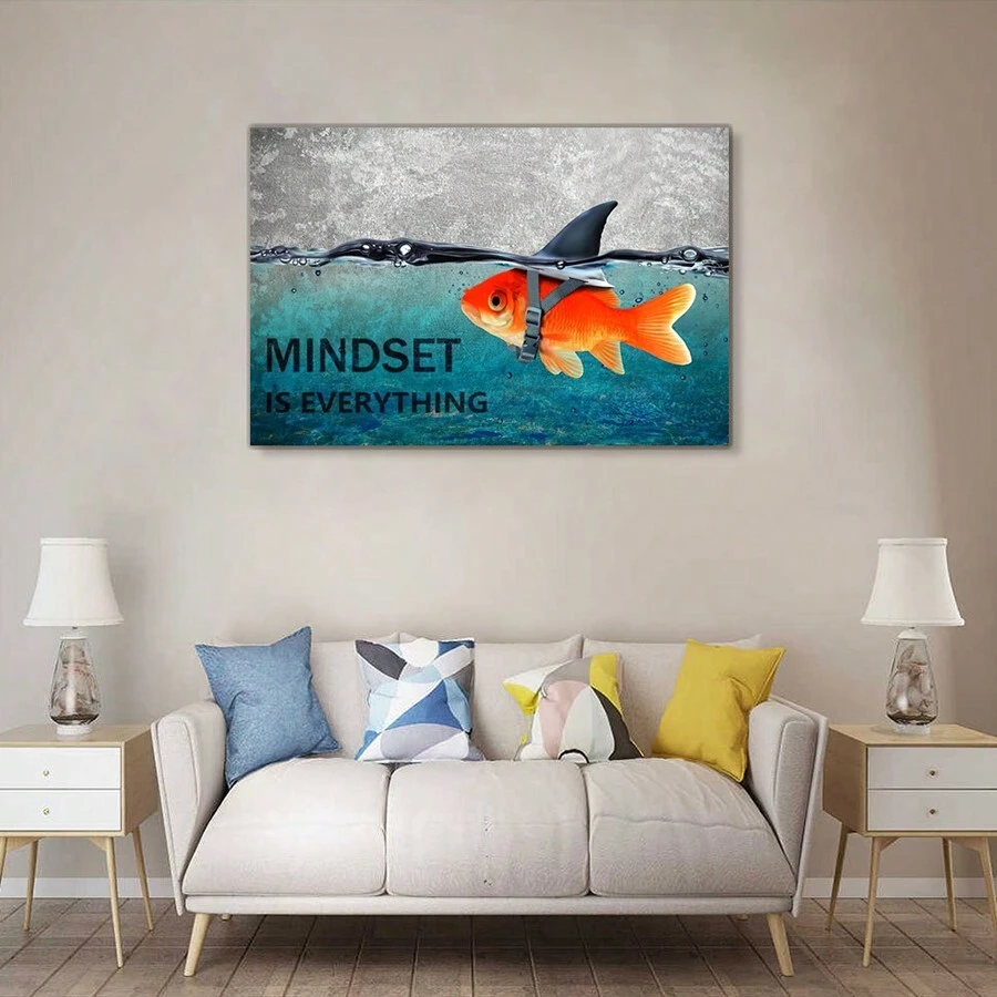 1PC Mindset Is Everything Motivational Canvas Office Wall Art Inspirational Entrepreneur Quotes Poster Print Artwork Painting Wall Picture For Living Room Bedroom Office Framed(No Frame)