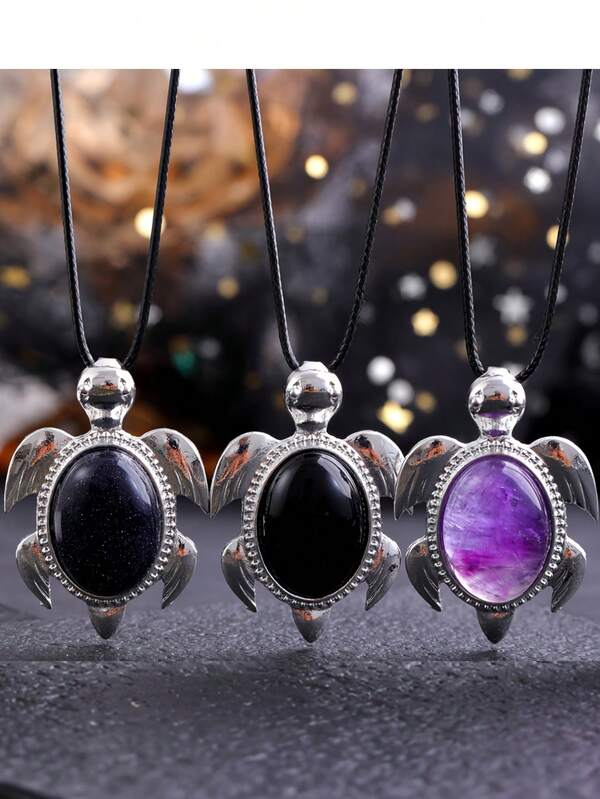 1PC Natural Stone Pendant Cute Turtle Healing Crystal Fashion Pendant Necklace, DIY Decoration Jewelry Room Decoration Pendant Holiday Party Party Jewelry Gifts