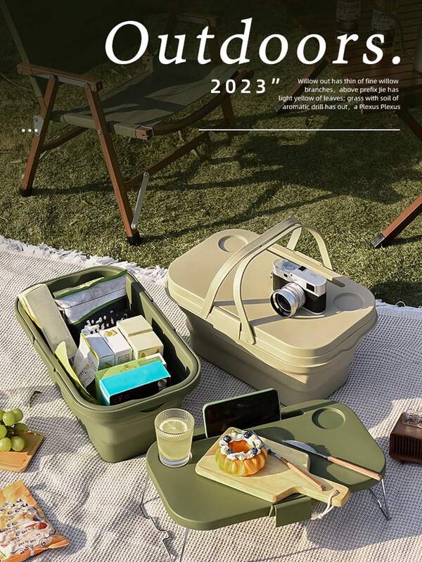 1PC Picnic Basket With Large Capacity - Portable Carrying Basket - Outdoor Spring Outing Picnic With Lid - Foldable Basket