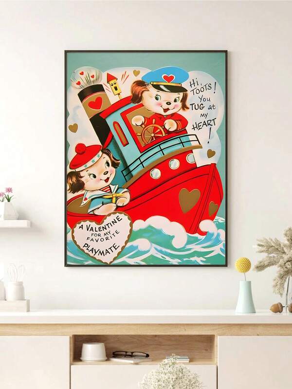 1PC Retro Valentine'S Day Room Decoration, Maritime Dog'S Love Story, Lovers' Room Wall Art, Frameless Canvas Printed Matter, Retro Farmhouse Wall Decoration, For Her/Him, Holiday Gift.