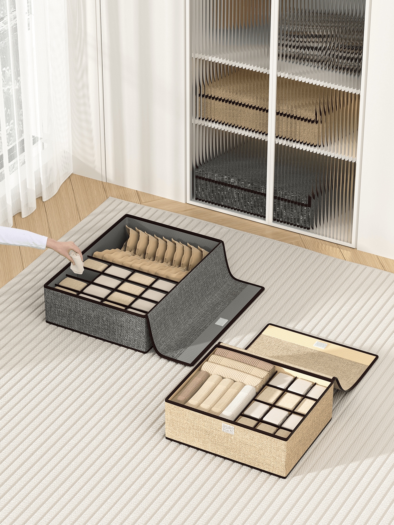1PC Selected Underwear Gray Storage Box, Small Item Storage Box, Multi Grid Classification Storage Box, 2-In-1 Storage Box, Multi Functional Storage Box, Fabric Flexibility, Exquisite Edge, Suitable For All Forms Of Storage