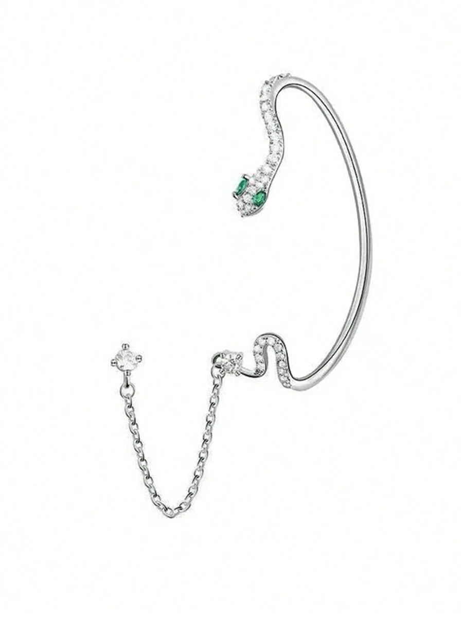 1PC Silver Needle Inlaid Diamond Snake Shaped Earrings And Ear Hanging Integrated Niche Design, With A Cool And High-End Feel