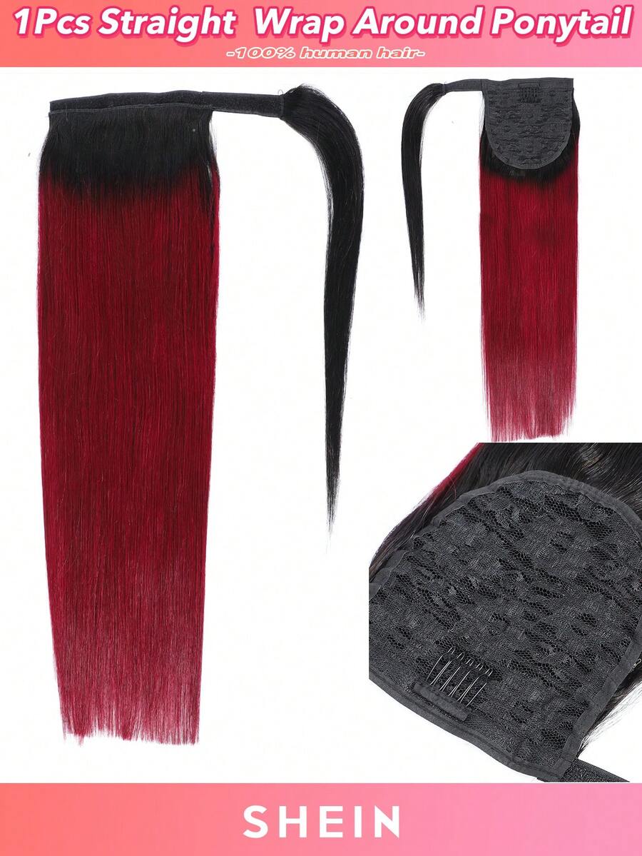 1PC Straight Wrap Around Ponytail T1B/99J Straight Human Hair Magic Paste Ponytail Hair For Women Extensions