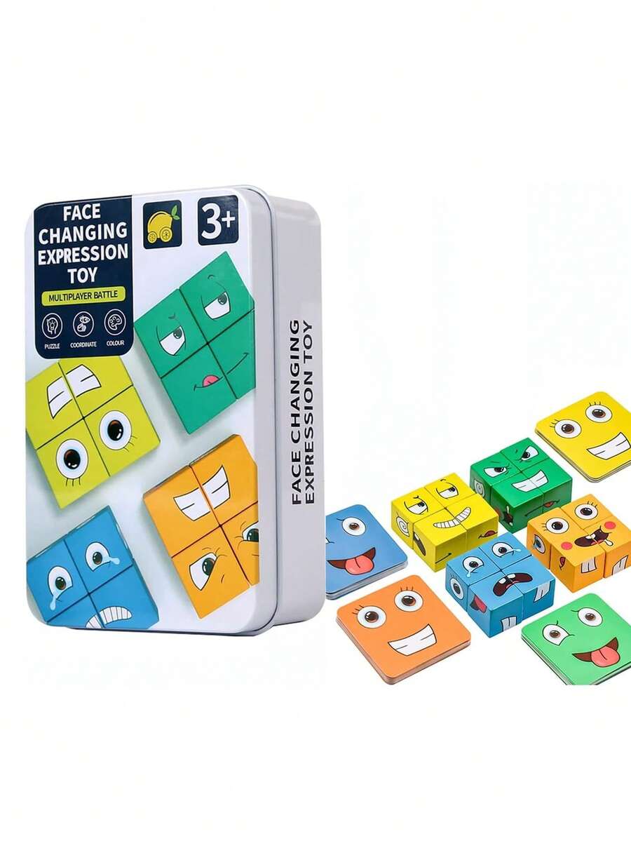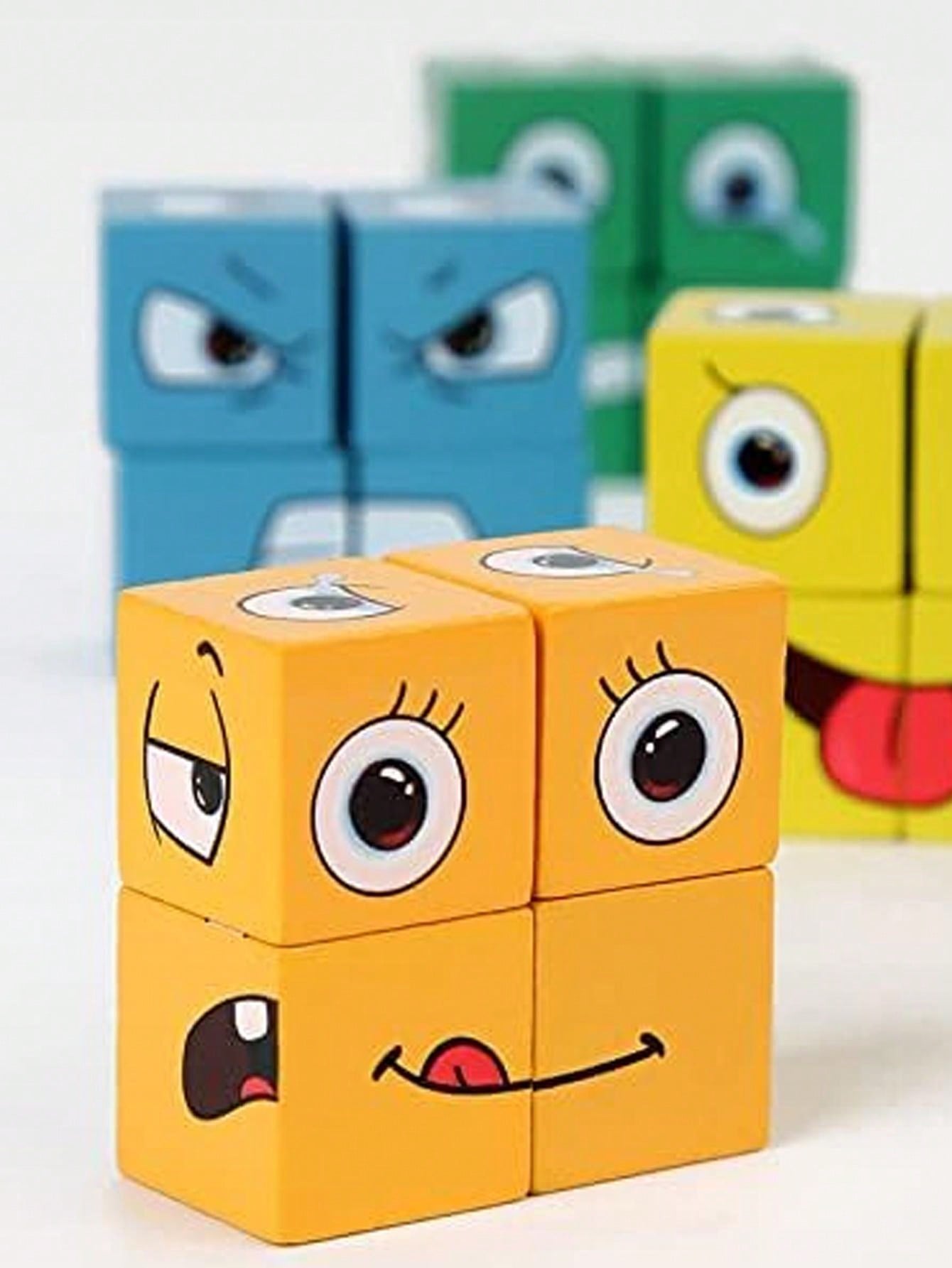 1PCS Wooden Expression-Changing Face Puzzle Children'S Toy, Educational Early Education Building Blocks, Parent-Child Interactive Game, Which Is Conducive To Training Children'S Thinking Logic And Concentration.