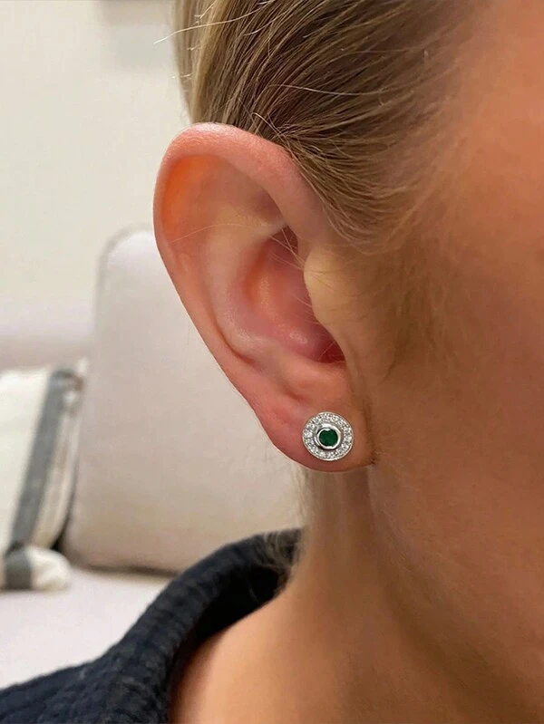 1Pair 925 Sterling Silver Retro Evil Eye Green Emerald Studs 18K Gold Plated Fashion Cute Tiny Small Crystal Zirconia Fine Jewelry For Women Daily Wear Wedding Party